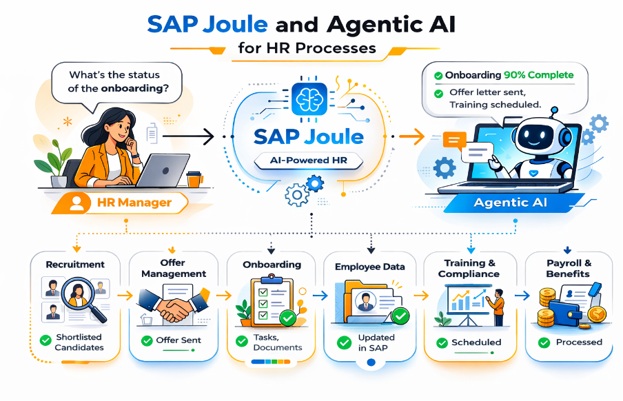 Joule is SAP’s AI chatbot: je stelt vragen of geeft opdrachten in normale taal, en Joule helpt je door inzichten te geven en – steeds vaker – ook acties te starten in SAP-apps zoals SuccessFactors.