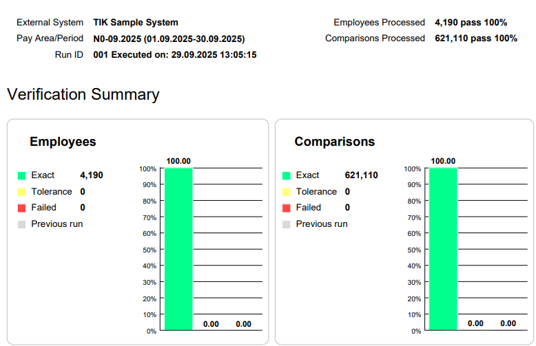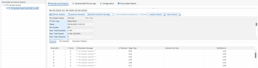 Na succesvolle migratie van data is er een tweede belangrijke tool binnen de TIK Nexus Suite : de payroll verificatie module. Payroll verificatie geeft inzicht in de payroll resultaten. Bij verschillen kan worden geanalyseerd op looncomponent, medewerker of een combinatie daarvan en in het systeem . De samenvatting geeft in een grafiek weer wat de status is van de verificatie en welke oplossingen er zijn gebruikt. Een krachtige tool waarbij de gegevens niet worden bewaard op een netwerk -of lokale schijf, alle acties worden uitgevoerd in het systeem.
